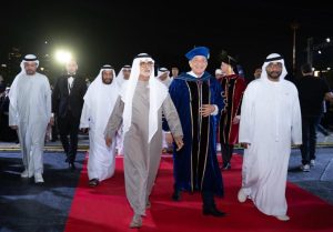 شهد معالي الشيخ نهيان بن مبارك آل نهيان، وزير التسامح والتعايش، الحفل السنوي لتخريج الدفعة الرابعة عشرة من طلبة الجامعة الأمريكية في الإمارات (AUE)، التي أُطلق عليها “دفعة غينيس”، خلال احتفالية استثنائية احتضنها فستيفال أرينا دبي – القاعة الخارجية، تزامناً مع احتفالات دولة الإمارات بعيد الاتحاد الـ54.